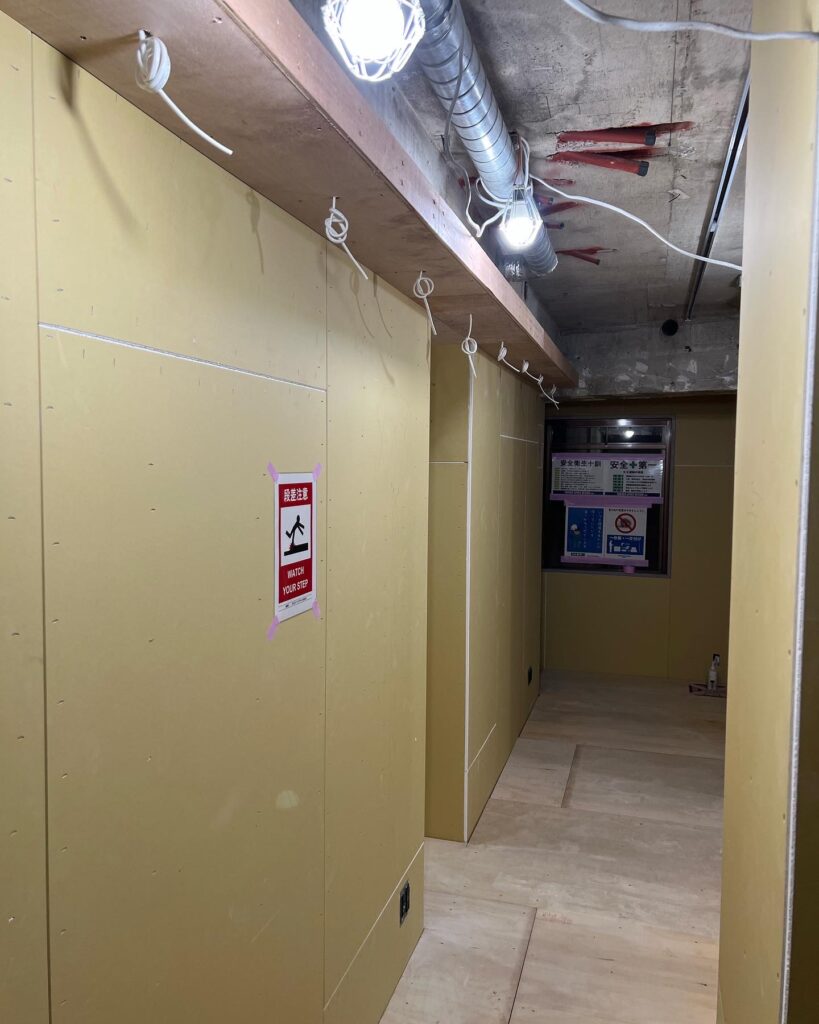 空間全体の下地を軽量鉄骨で組み上げ、正確な寸法で仕上げました。